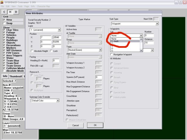 The med will automatically give the waypoints their own number, starting with the one you placed first, then second etc. The first waypoint will be 1,0. This means waypoint list number 1, waypoint number 1. So the second waypoint will be 1,1. The first waypoint is always 0. The directional arrows show you the way they are numbered.