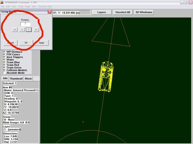 Rotate the vehicle using the << < > >> keys, line it up with the lines that join the waypoints together. Then click on OK.