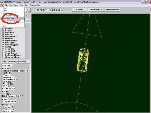 Select “Save and Export” from the edit menu, type Test mission in the file name box and click on OK. Any future saves will save the mission over the old one. You only have to enter a file name the first time you select “Save and Export”.